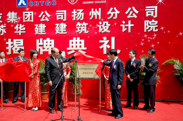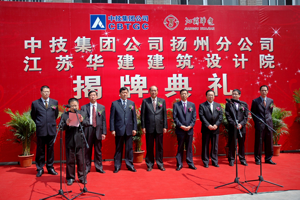 江蘇華建建筑設計院、中技集團揚州分公司舉行隆重揭牌典禮 時間:2009-04-18 11509 4月18日,江蘇省華建建設股份有限公司建筑設計院、中國建筑技術集團有限公司揚州分公司舉行隆重揭牌典禮。這是我公司與中技集團開展戰略合作、尋求優勢互補的創新之舉,對兩個知名品牌強強聯合、共利雙贏具有重要意義。典禮由公司副總經理程杰主持,中技集團董事長黃強、公司董事長陸金龍、江蘇華建設計院院長黎裕華、中技集團揚州分公司總經理施衛東先后發表講話。中技集團副總裁王京豐,公司領導吳士茂、徐仁國、陳榮春參加儀式。