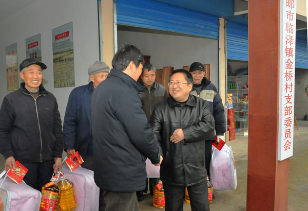 公司領導節前扶貧慰問 時間:2010-02-10 5460 2月10日,公司副總經理程杰一行冒雨赴公司對口扶貧的高郵臨澤鎮金橋村進行走訪慰問。程總參觀了由我公司支持建成的金橋村村民服務中心,了解去年該村的基本情況和今年的發展打算,程總希望金橋村今后要在扶持特色產業上作文章,努力形成自力更生,自我造血的能力。隨后,程總看望了當地低收入貧困農戶,給他們送去節日的問候和慰問品。 金橋村地處里下河地區腹地,位于高郵、寶應、興化三縣交界處。從2008年公司定點扶貧該村以來,公司著力幫扶改善交通環境,發展高效農業,取得一定成績,受到市扶貧辦的肯定。