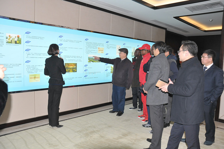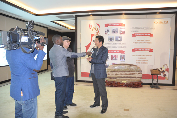 客人在陸董事長陪同下參觀了華建展示中心,簡單的午餐后在會議室進行了交流與會談。陸董事長首先介紹了華建的基本情況,特別是打造“三個共同體”以及與員工和合作方分名、分利、分未來的運營機制,最后希望能夠借助我國“一帶一路”戰略與海山國際聯合共同參與安哥拉的城市建設。安方用PPT介紹了2013-2017年的遠期發展規劃和首都羅安達近期的發展設想,希望江蘇華建這樣有實力的中國國有企業積極到安哥拉拓展市場。陸董事長最后還接受了安哥拉國家電視臺隨行記者的采訪,并與科魯茲·內圖秘書長、巴依相·朱紐主席等貴賓親切合影。