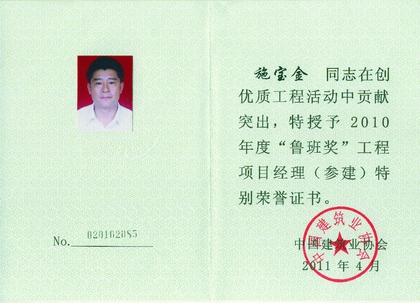 施寶金 時間:2012-04-10 7617 施寶金,高級工程師,現任深圳公司七處二工區常務副主任、項目經理。1996年到深圳參加工作,參與過國際商會中心、榮超經貿中心、江勝大廈、綠景紀元大廈等重點項目施工,獲“深圳市建筑業企業優秀項目經理”稱號,被授予“創魯班獎工程項目經理特別榮譽證書”。