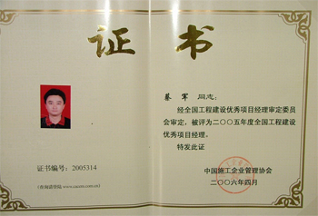 他本人因成績突出,工作勤勉,先后獲得“揚州市青年突擊手”、全國工程建設優秀項目經理等榮譽稱號。